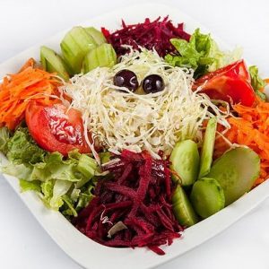 (домат, краставица, кромид, сирење, маслинки, оригано) |