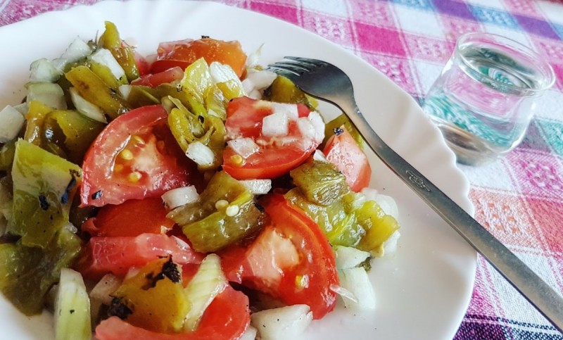 (домат, краставица, кромид, сирење, маслинки, оригано) |